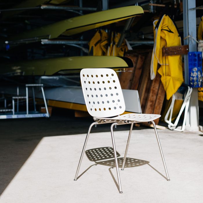 Der Aluminiumstuhl Coray besticht durch Leichtigkeit, Robustheit und formale Klarheit. Der im Jahr 1953 von Hans Coray entworfene Designklassiker ist ein vielseitiger, praktischer Allrounder – gleichermassen geeignet für die Bestuhlung öffentlicher Räume, zum Beispiel von Linienschiffen oder Restaurant-Terrassen, wie für den heimischen Garten.