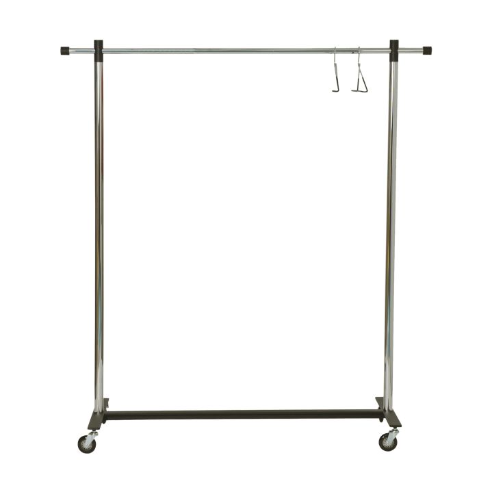 • Stahlrohr verchromt, Halterungen aus hochwertigem Kunststoff, Querstange verchromt mit Gummiabschlüssen. Basis aus Stahl pulverbeschichtet schwarz strukturiert, vier Rollen, davon zwei arretierbar.