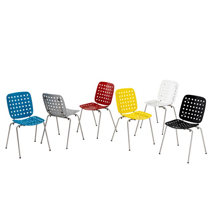 - Sitz und Rücken Aluminiumblech gelocht und pulverbeschichtet